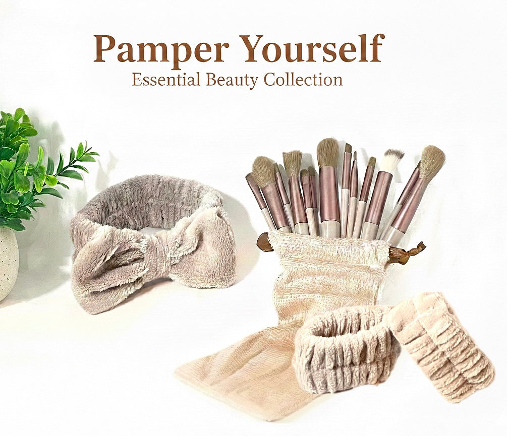 13pcs Makeup Brush Set w/ 3pcs Headband & Wristbands Set